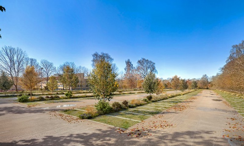 De midlertidige parkeringspladser etableres, under forudsætning af vedtagelse af lokalplanen, i forlængelse af den nuværende fladeparkering ved Rådmandshaven.